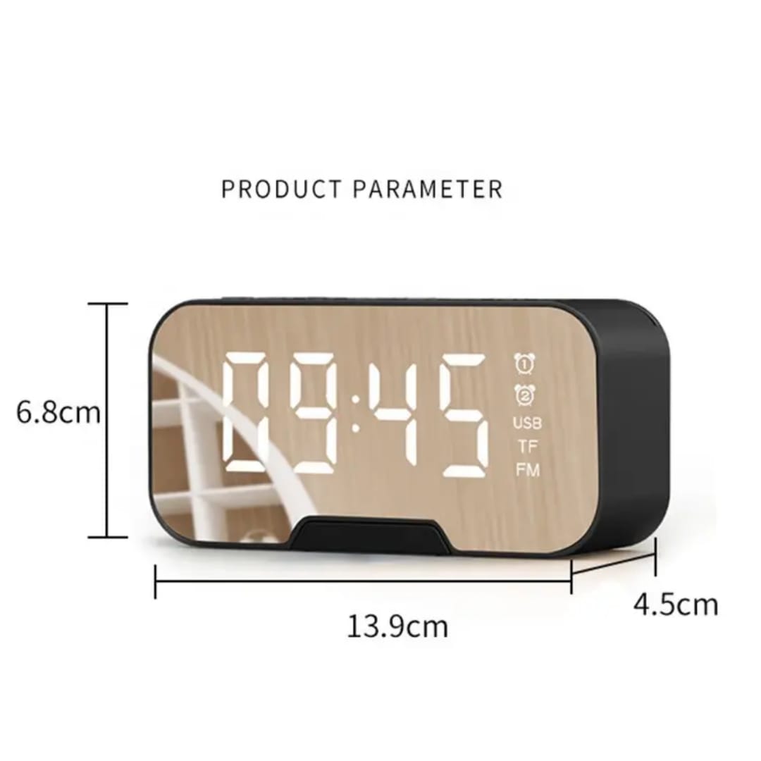 3W×2 | ১৪০০mAh | FM রেডিও | BT 5.0 | ⏰ ২ অ্যালার্ম | ️ তাপমাত্রা প্রদর্শন | ফোন হোল্ডার